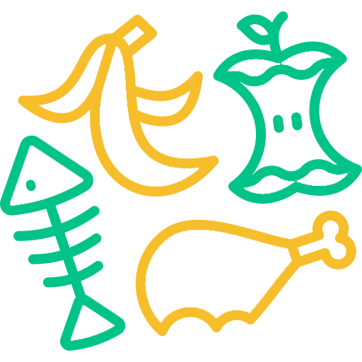 Restos de comida, café, saquitos de té, envoltorios y vasos plásticos con residuos.